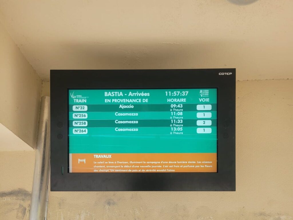 La mise en place de la Commande Centralisée de Voie Unique nécessite un vaste programme de travaux répartis sur l’ensemble du réseau. La modernisation de la signalisation constitue une étape essentielle, accompagnée de la création ou du réaménagement de points de croisement, indispensables pour accroître la fréquence des trains sur une infrastructure à voie unique. Les gares et haltes font également l’objet d’adaptations, tout comme les quais et les installations techniques. Un Système d’Information Voyageurs a également été installé dans 9 gares significatives du réseau. Il permettra de donner aux usagers les horaires de départ et d’arrivée des trains, mais aussi des informations contextuelles comme des évènements culturels ou sportifs pour lesquels le Chemin de Fer de Corse propose des offres de transport.