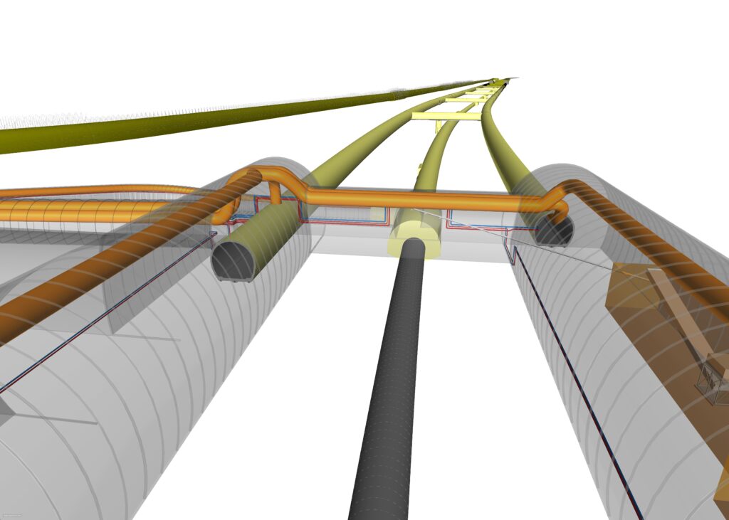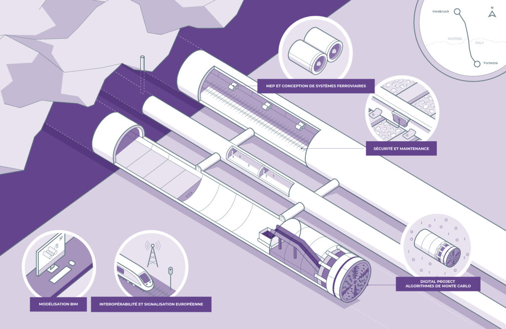 Les systèmes électriques, de ventilation, de détection incendie et de contrôle d’accès du tunnel intègrent les dernières technologies, sont modélisés en BIM et conçus pour répondre aux exigences autrichiennes, italiennes et européennes en matière d’interopérabilité, de sécurité et de résilience.
