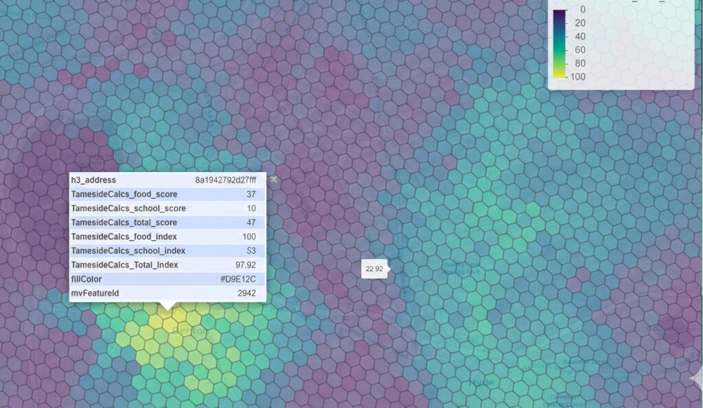 - Visualise consistently across an area using H3 hexagon global indexing.